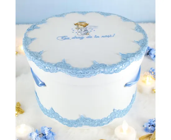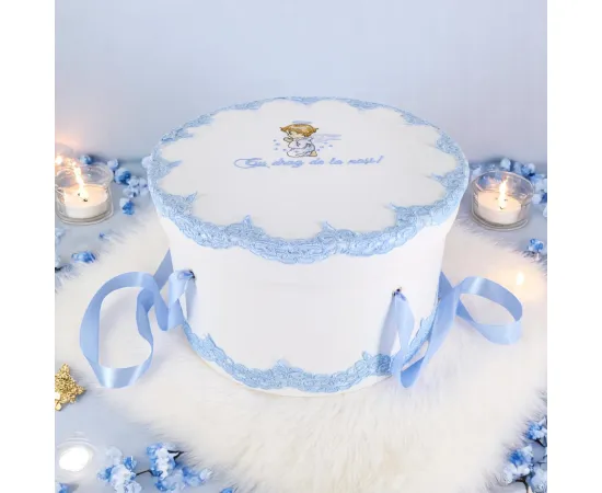 Trusou Botez cu 8 Piese Brodat, Ingeras, Culoare Albastru - TB269
