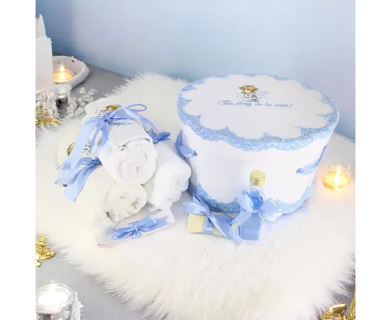 Deoarece botezul este un eveniment important pentru parinti si nasi, venim in ajutor cu un set care contine toate cele necesare pentru crestinarea bebelusului