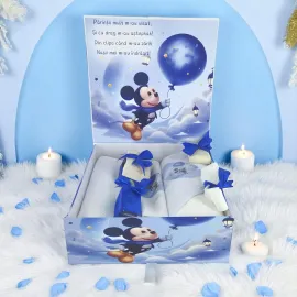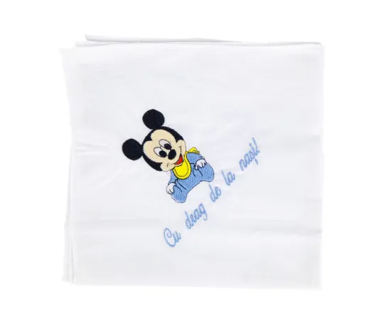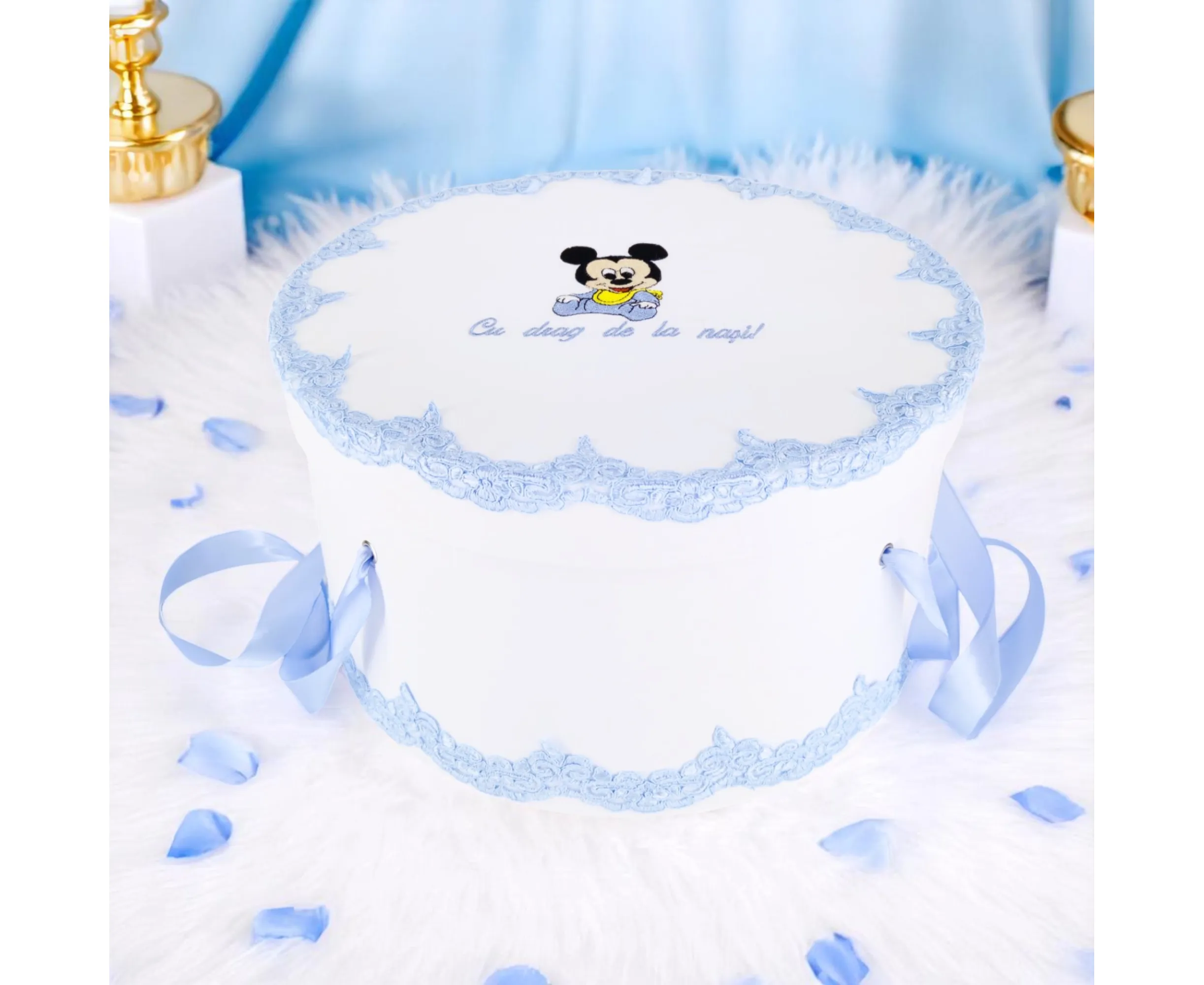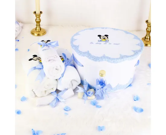 Trusou Botez cu 8 Piese Brodat, Mikey Mouse, Culoare Albatru Deschis - TB267