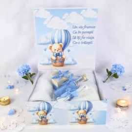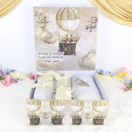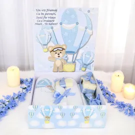 Deoarece botezul este un eveniment important pentru parinti si nasi, venim in ajutor cu un set care contine toate cele necesare pentru crestinarea bebelusului