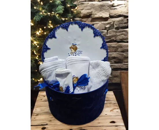 Deoarece botezul este un eveniment important pentru parinti si nasi, venim in ajutor cu un set care contine toate cele necesare pentru crestinarea bebelusului