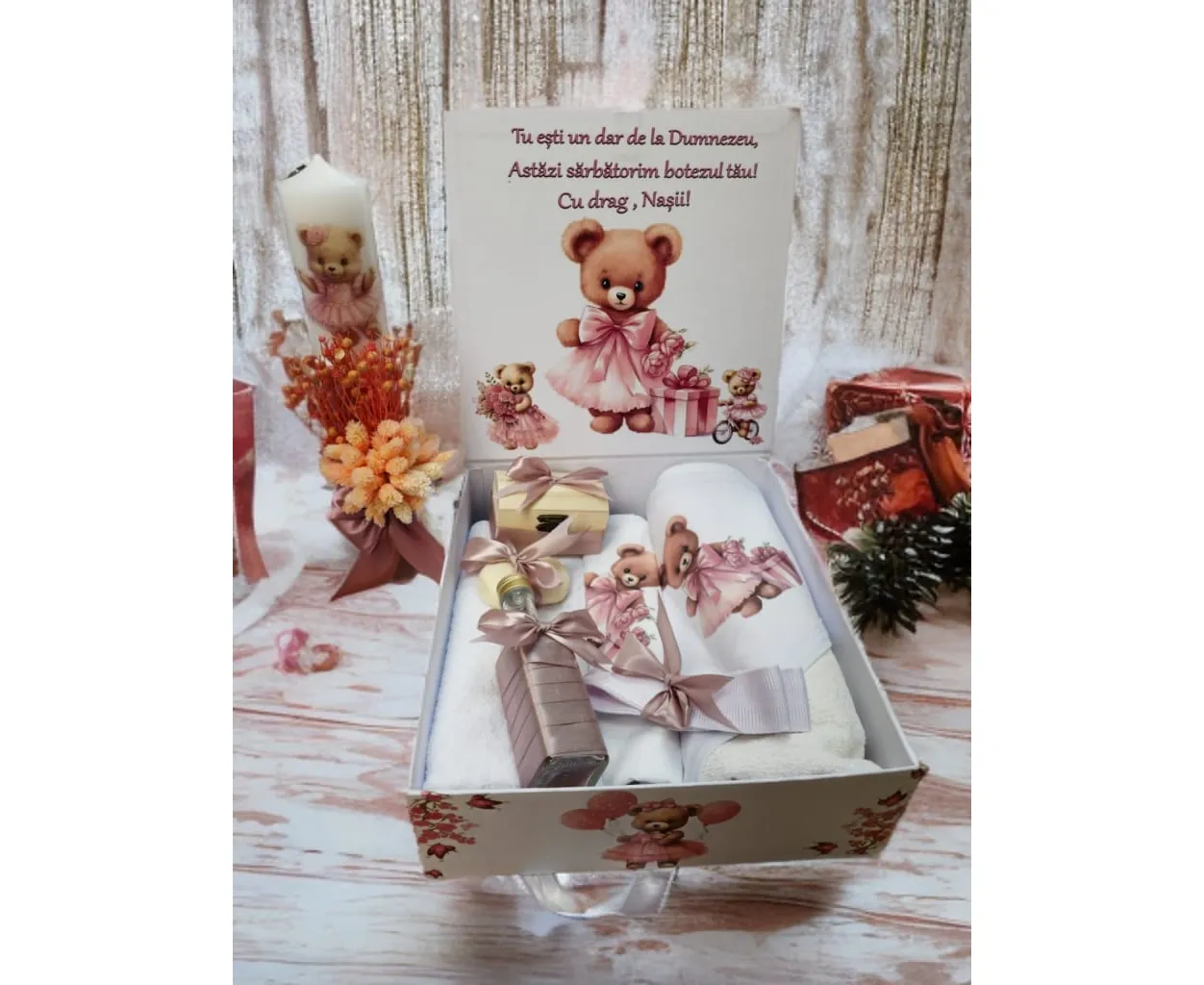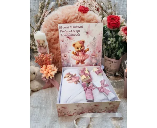 Trusou Botez cu 8 Piese + Lumanare - Model Ursulet - TB802