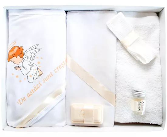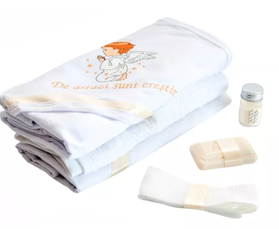 Pentru ca botezul este un eveniment important pentru parinti si nasi, venim in ajutor cu un set care contine toate cele necesare pentru crestinarea bebelusului