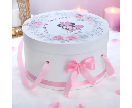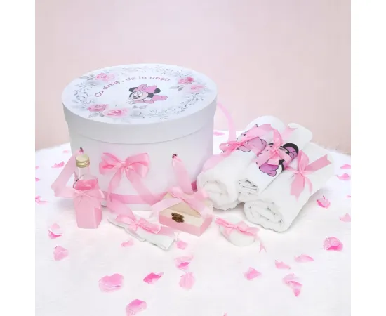 Trusou Botez cu 8 Piese Imprimat, Baby Minnie Mouse, Culoare Roz - TB23