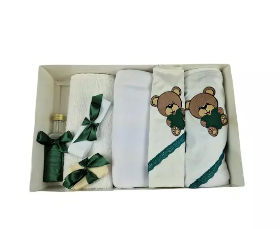 Trusou botez, model brodat, Baby Bear Verde - BT25