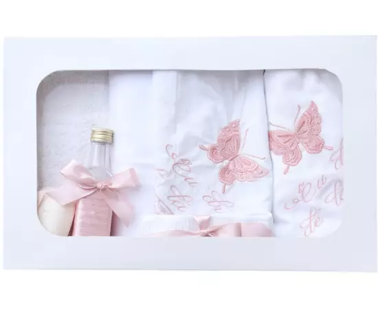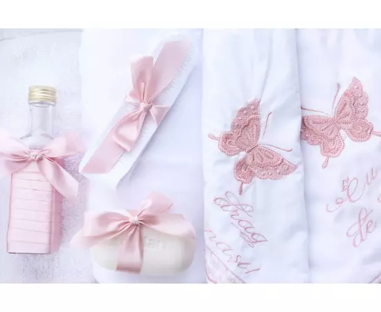 Trusou Botez 7 piese model brodat ,Fluturi ROZ - TB123