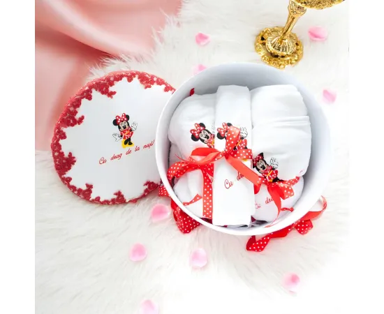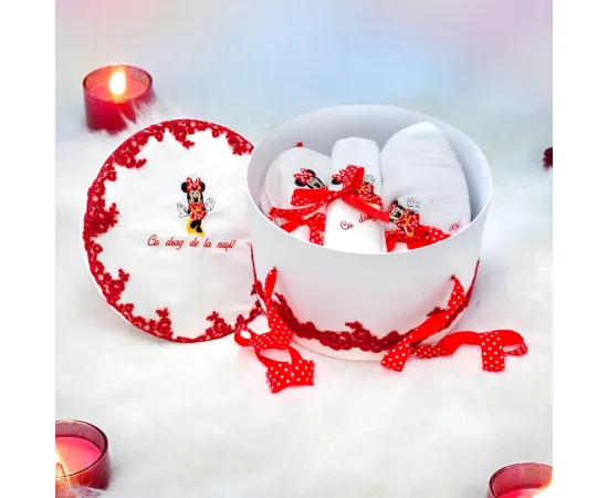 Trusou Botez cu 8 Piese Brodat, Minnie Mouse, Culoare Rosu - TB28