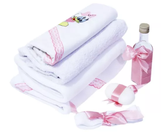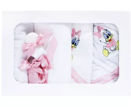 Trusou Botez cu 7 piese - Daisy Duck brodata - ALB - ROZ - TB76