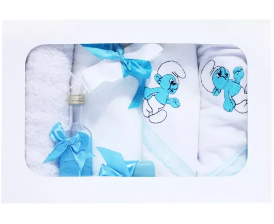 Trusou Botez cu 7 piese - Strumf brodat - ALB - TURCOAZ - TB69