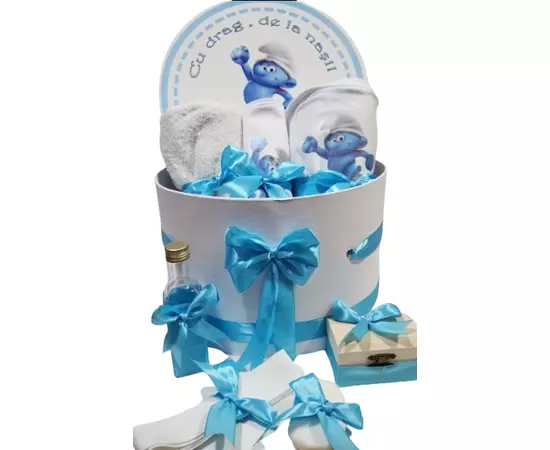 - Prosop pentru bebelus – din material moale deosebit de absorbant,din bumbac de cea mai buna calitate. Prosopul este decorat cu dantela si cu diferite mesaje. Dimensiunea prosopului este de 80 cm x 80 cm, suficient pentru a sterge bebelusul si pentru a-l tine infasurat pe parcursul ceremoniei.