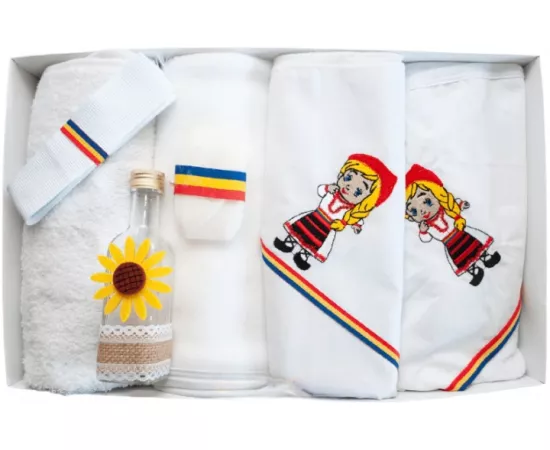 Trusou Traditional Botez cu 7 piese - Fetita brodata - ALB - TB87