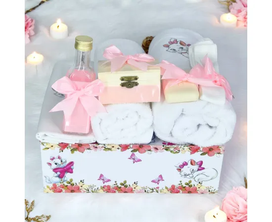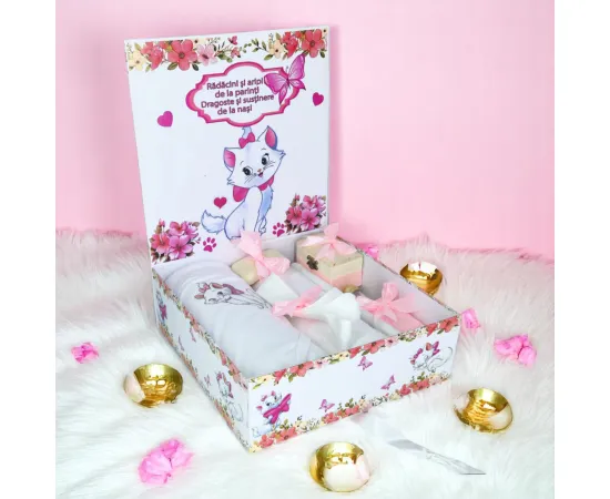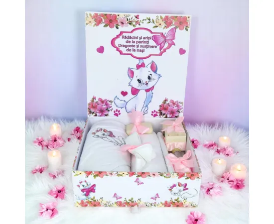 Trusou Botez cu 8 Piese, Pisica Marie, Culoare Roz Deschis - TB189