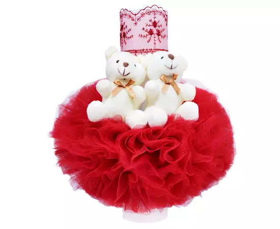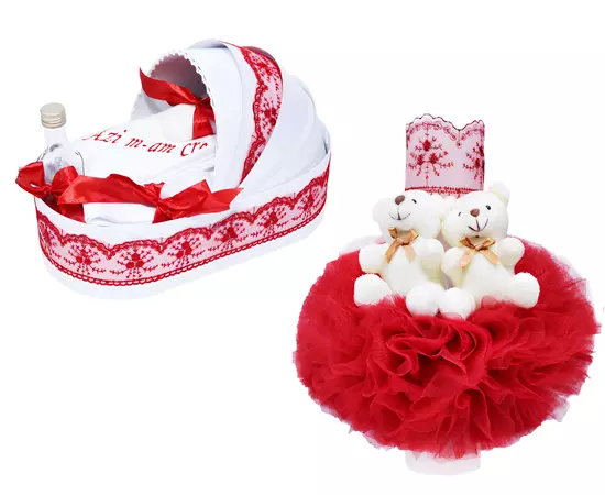 Lumanarea pentru botez este confectionata din ceara alba si este accesorizata cu tulle rosu, incretit, broderie in aceeasi nuanta si doi ursuleti. Ursuletii de plus sunt detasabili si pot ramane amintire bebelusului, pentru a crea impreuna momente frumoase.