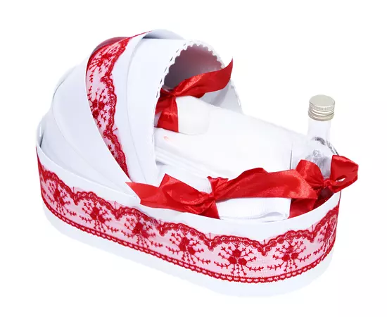 Set Trusou Botez cu Lumarare, 7 Piese, "Azi m-am crestinat", Alb-Rosu - TBL18