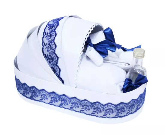 Trusou Botez tip Landou cu 6 piese - Alb-Bleumarin - "Azi m-am crestinat" - TBL07