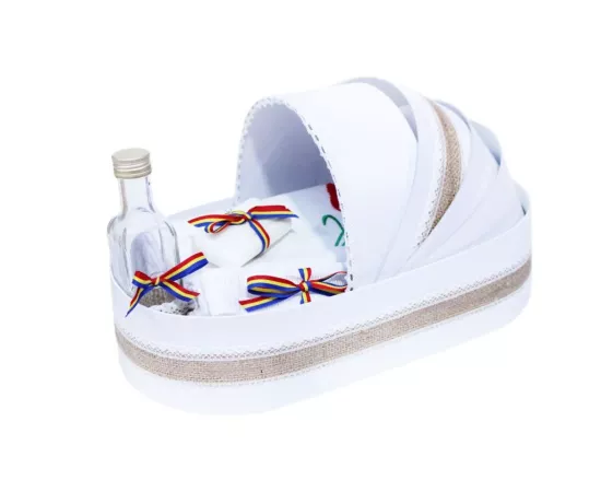 Trusou Botez tip Landou cu 6 piese - Alb-Traditional - "Spice de grau brodate" - TBL08