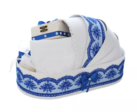 Trusou Botez tip Landou cu 8 piese - Alb - Albastru- TBL17