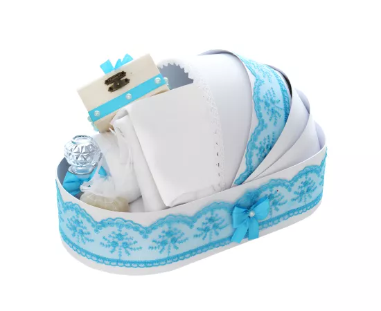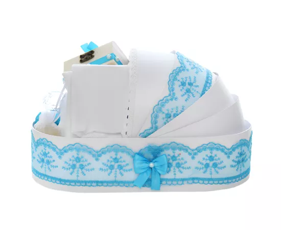 Trusou Botez tip Landou cu 8 piese - Alb - Baby Blue - TBL15
