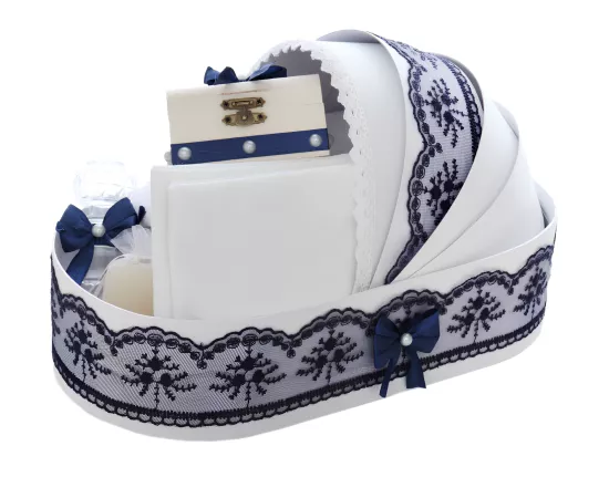 Trusou Botez tip Landou cu 8 piese - Alb - Bleumarin - TBL16