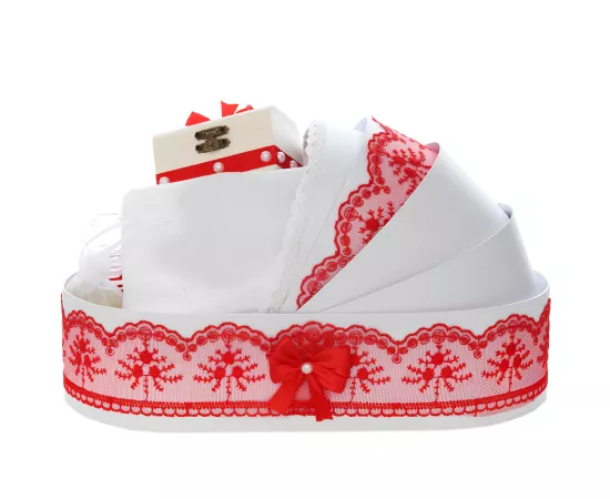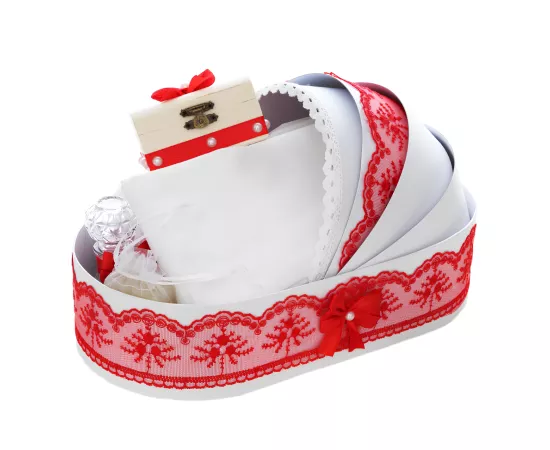 Trusou Botez tip Landou cu 8 piese - Alb-Rosu - TBL13