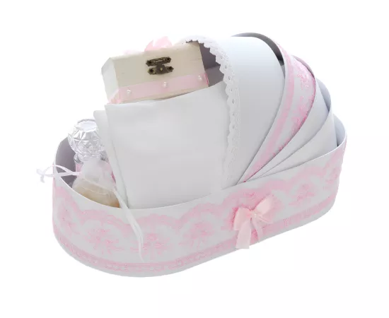 Trusou Botez tip Landou cu 8 piese - Alb-Roz Pudra - TBL11