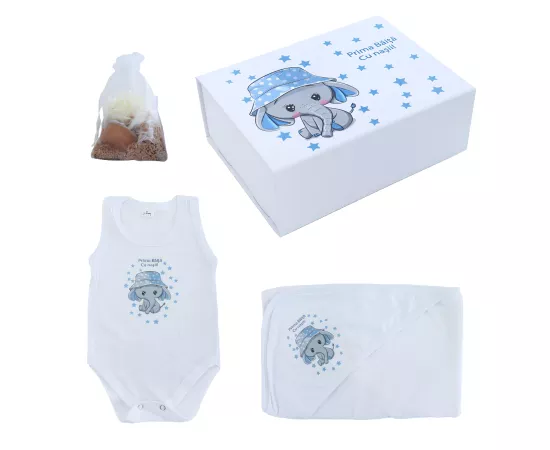 Trusou Prima Baita, Personalizat cu Mesaj - "Prima Baita cu Nasii" Elefantel Albastru - TPB15