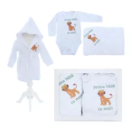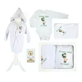 Transformă prima băiță de după botez într-un moment special și plin de emoție! Acest set complet pentru băița de mir este alegerea ideală pentru părinți și nași care își doresc un trusou elegant, practic și de calitate pentru creștinarea bebelușului.
