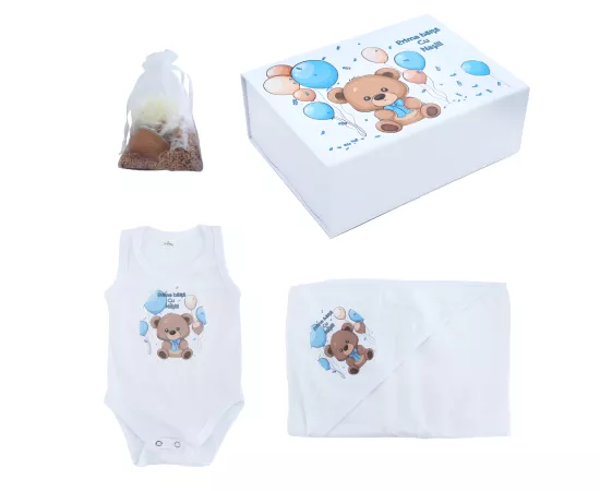 Trusou Prima Baita, Personalizat cu Mesaj - "Prima Baita cu Nasii" Ursulet Albastru cu Baloane - TPB18