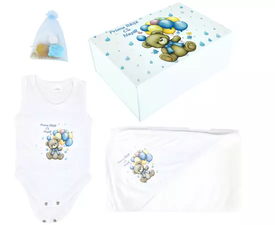 Trusou Prima Baita, Personalizat cu Mesaj - "Prima Baita cu Nasii", Ursulet cu Baloane - TPB196