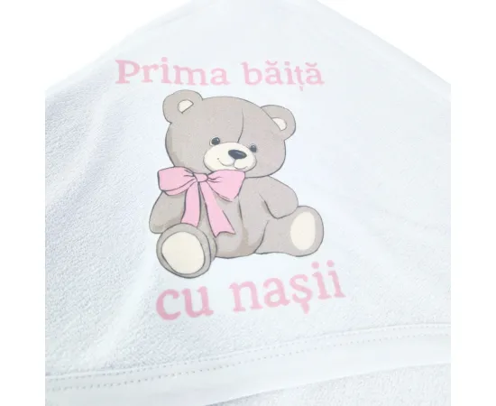 Trusou Prima Baita, Personalizat cu Mesaj - "Prima Baita cu Nasii" Ursulet cu Fundita Roz - TPB201