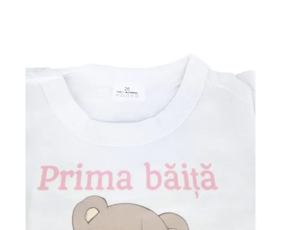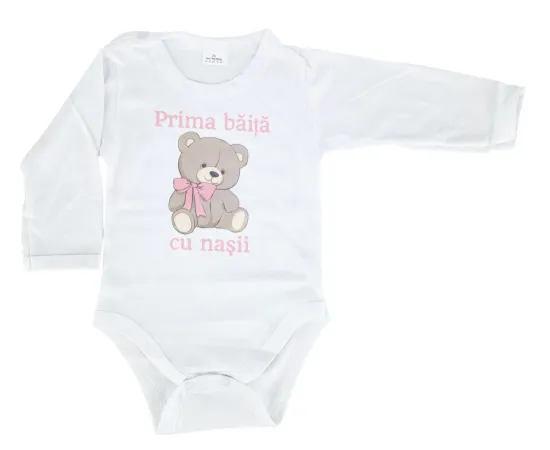 - Body din bumbac 100% (mărimi 0-3 luni / 3-6 luni) – confortabil, ușor de îmbrăcat și respirabil