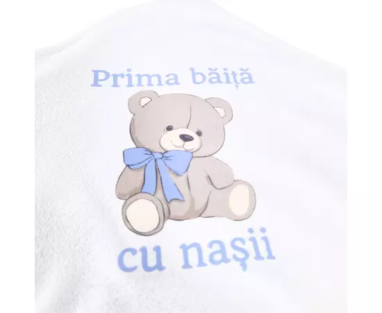 Trusou Prima Baita, Personalizat cu Mesaj - "Prima Baita cu Nasii" Ursulet Fundita Albastra - TPB43