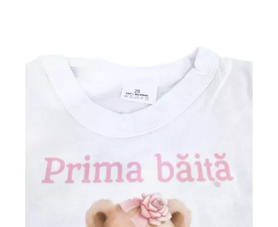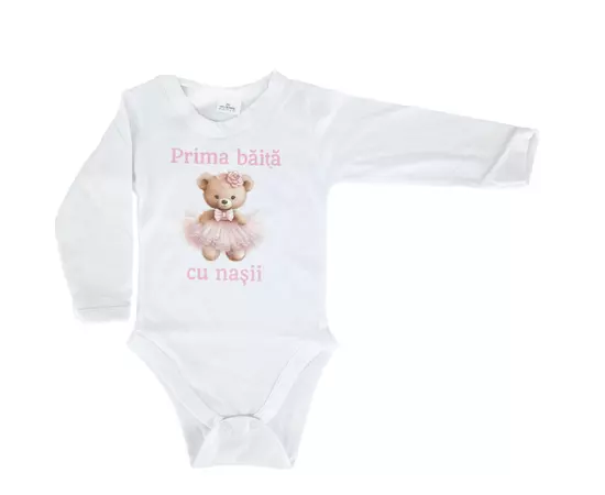 - Body din bumbac 100% (mărimi 0-3 luni / 3-6 luni) – confortabil, ușor de îmbrăcat și respirabil