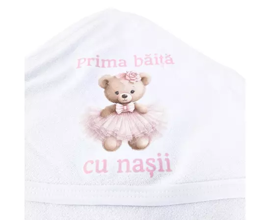 Trusou Prima Baita, Personalizat cu Mesaj - "Prima Baita cu Nasii" Ursulet Rochita Roz - TPB44