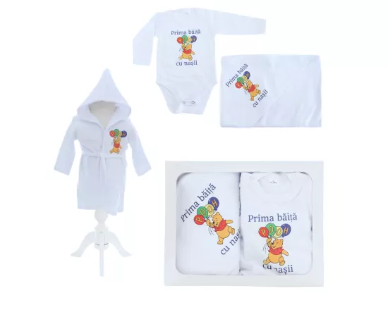 Transformă prima băiță de după botez într-un moment special și plin de emoție! Acest set complet pentru băița de mir este alegerea ideală pentru părinți și nași care își doresc un trusou elegant, practic și de calitate pentru creștinarea bebelușului.