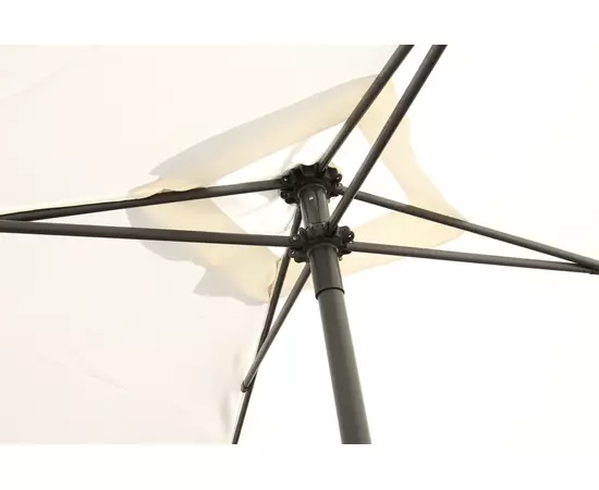 Cupola este fabricata din poliester (160g/m2) de culoare crem si are forma patrata. Materialul din care este confectionata umbrela este special tratat sa reziste la actiunea razelor solare si are diametrul de 200x200 cm.