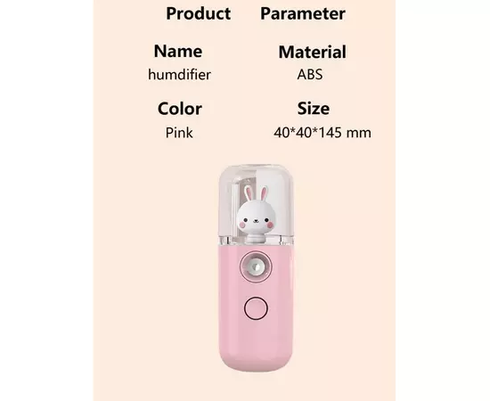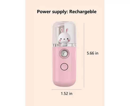 Umidificator Camera Portabil cu Iepuras Roz - Reincarcabil - 3 x 10 cm