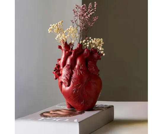 Vaza Decorativa în forma de Inima, Rosu, 17x13cm - 620620