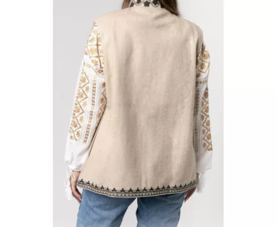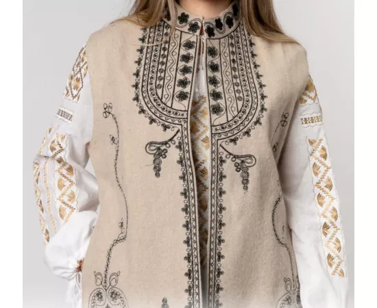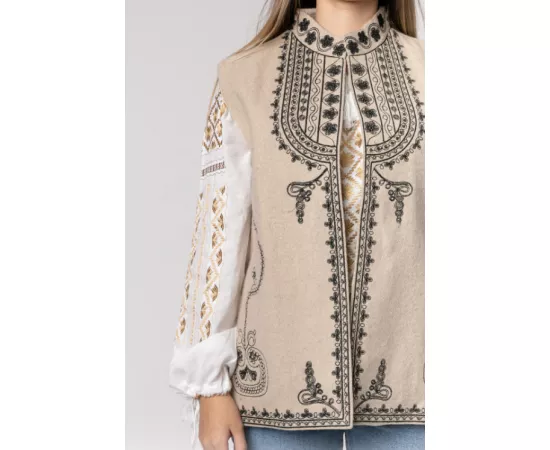 Vesta Traditionala Crem cu Broderie Florala Neagra, de Dama - VT09