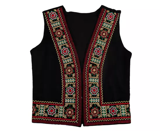 Vesta traditionala de baieti neagra cu broderie florala multicolora