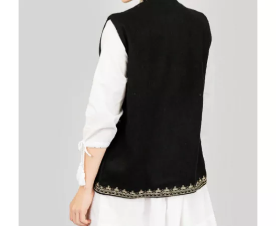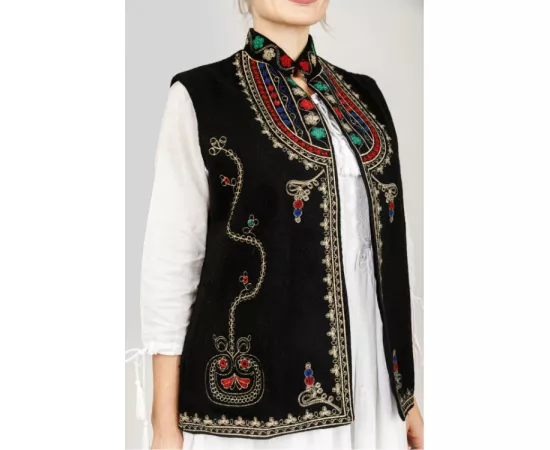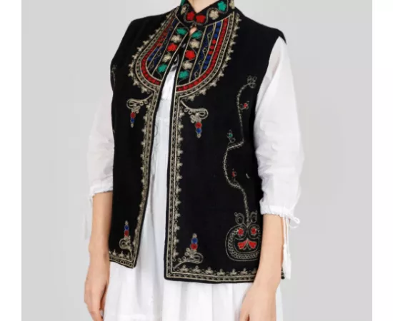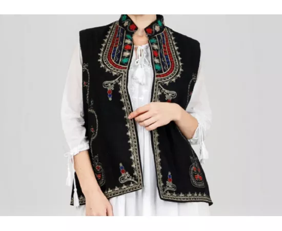 Vesta Traditionala Neagra cu Broderie Florala Multicolora, de Dama - VT06