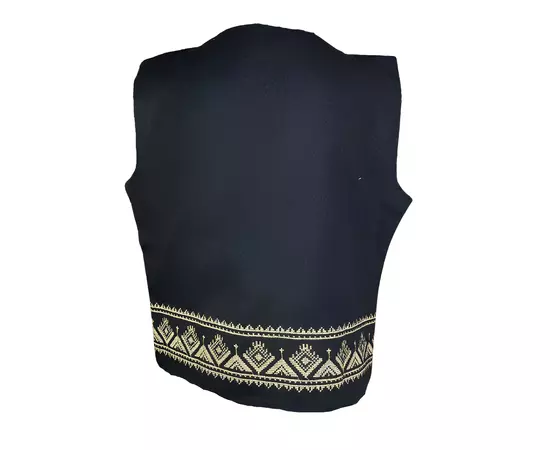 Vesta Traditionala Neagra cu Broderie Geometrica Crem, de Dama - VT05