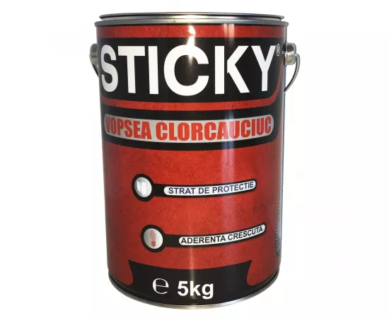 Vopseaua clorcauciuc Sticky este un produs de acoperire pe baza de rasini alchidice, clorcauciuc, extenderi, aditivi speciali si solventi.